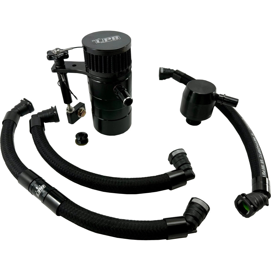The UPR Catch Can One Way Breather Plug N Play™ system for the 2021-2025 Ford F-150 5.0L is the ultimate solution for owners looking to improve engine performance and reliability, especially under boosted conditions. This all-new design combines a high-quality oil catch can and a one-way breather into one complete system. As engine boost levels rise, so does crankcase pressure. UPR’s innovative design allows excess pressure to open a patented internal one-way valve, venting it to the atmosphere and increasing horsepower while reducing stress on seals and gaskets. Designed for ease of installation and maintenance, this system features multiple chamber and stage filtration, coalescing filters at various micron levels, and a solid mount to the passenger side fender. The quick-release fittings and mounting bracket make this system simple to service, ensuring your truck runs cleaner and more efficiently.