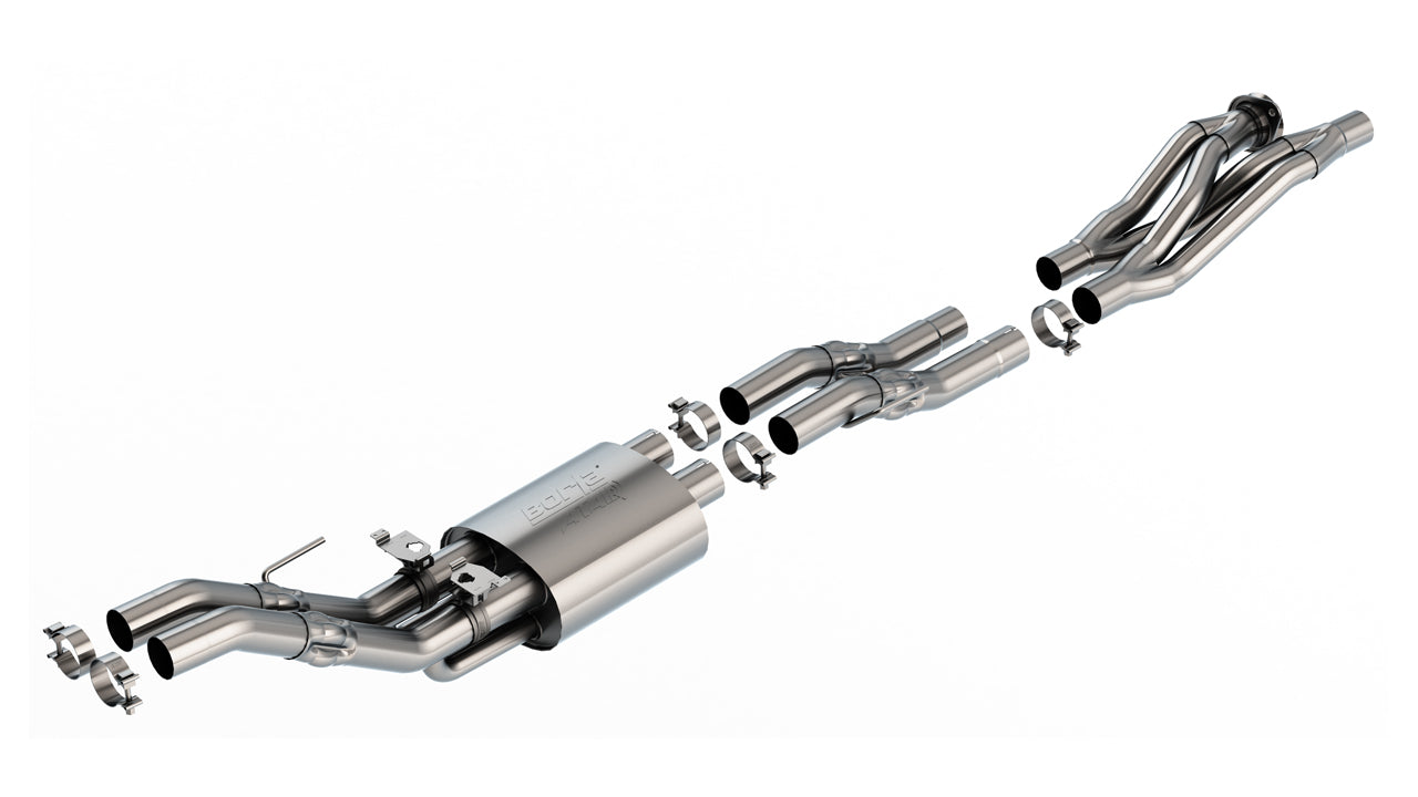 Enhance your 2023-2024 Ford F-150 Raptor R with the Borla 60737 R ATAK Catback Exhaust. This system offers an aggressive sound and increased performance, featuring durable stainless steel construction and a direct-fit design for easy installation.