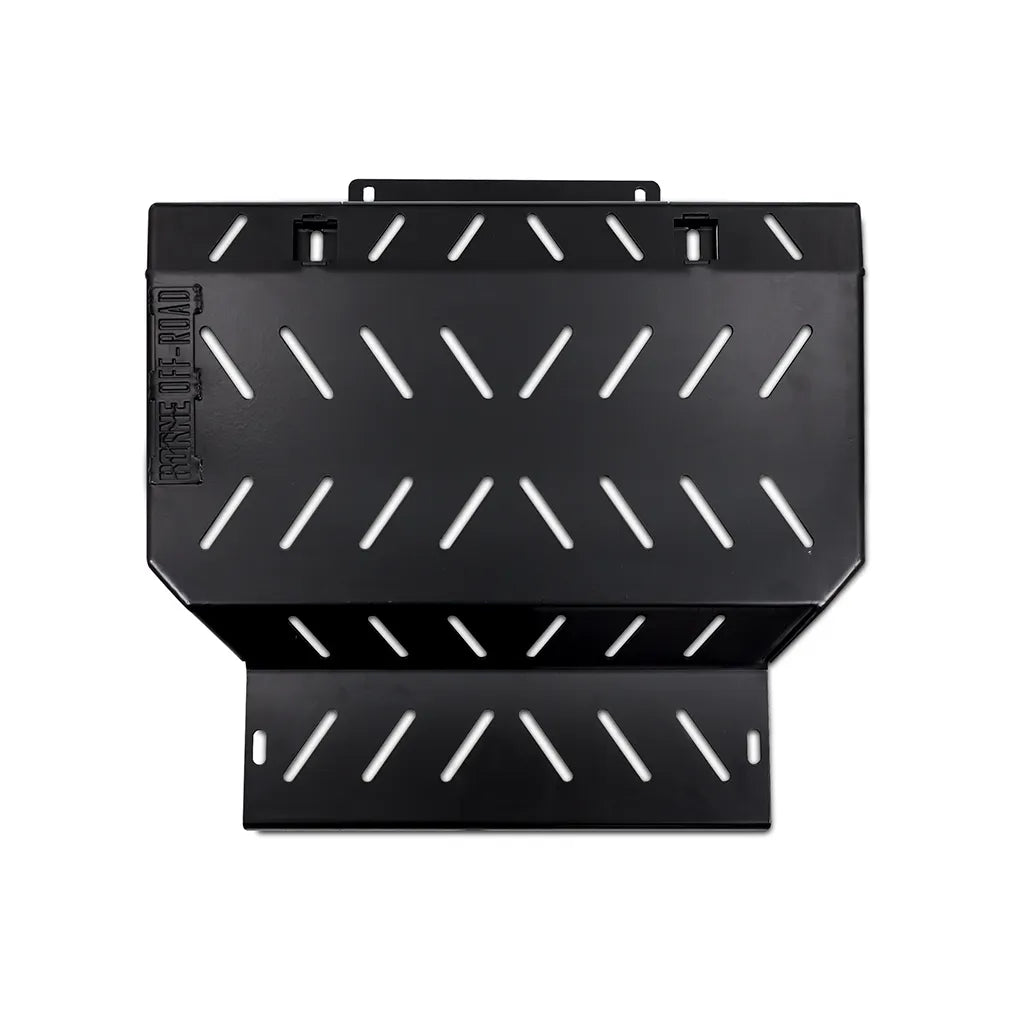 The Borne Off‑Road Engine Skid Plate protects your Ford F‑150 or Raptor from off‑road damage. Constructed from 5/32‑inch steel with reinforced edges and a corrosion-resistant black finish, it shields engine components while offering a direct-fit, easy install, and lifetime warranty for long-lasting reliability.