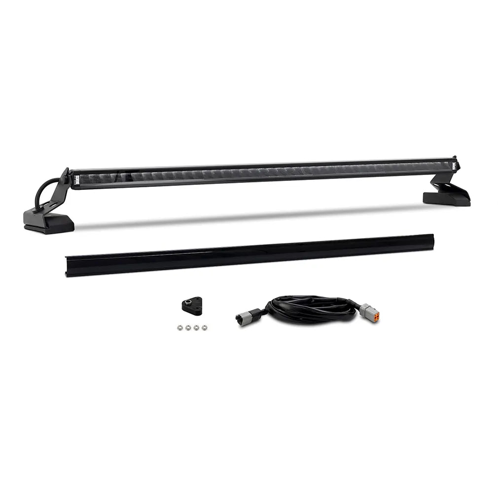 Kit includes: Light bar unit, direct‑fit mounting kit, wiring harness pig tail (and for upfitter version, custom harness for factory switches), protective cover.