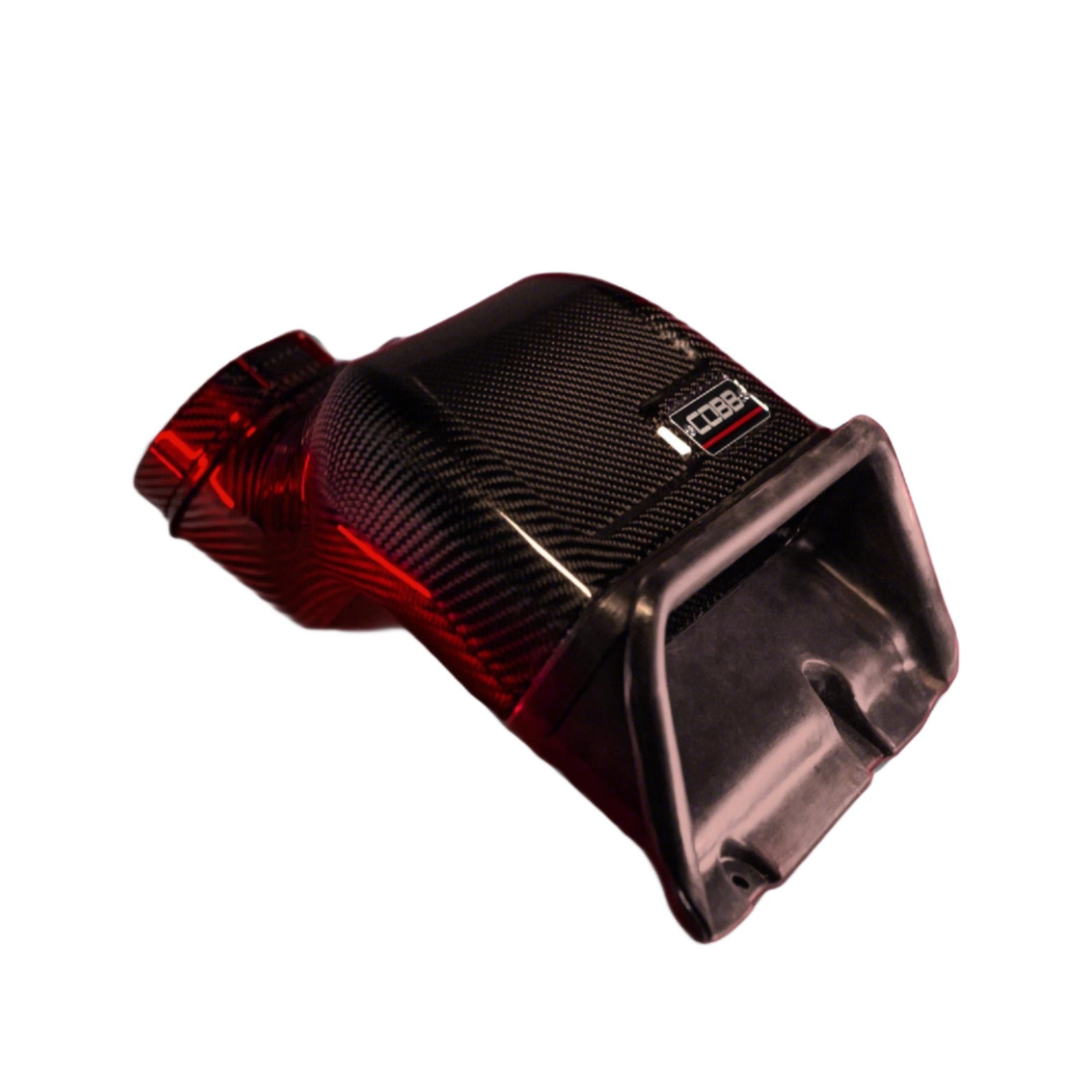 The COBB Redline Carbon Fiber Air Scoop for Ford F-150 enhances both performance and aesthetics. Crafted from 2x2 twill weave carbon fiber, it offers improved airflow and a sleek appearance. Key features include full carbon construction, an included intake scoop bracket, and compatibility with COBB OTS maps. It fits various Ford F-150 models, including the 2.7L and 3.5L EcoBoost versions, Raptor, Tremor, and Limited.