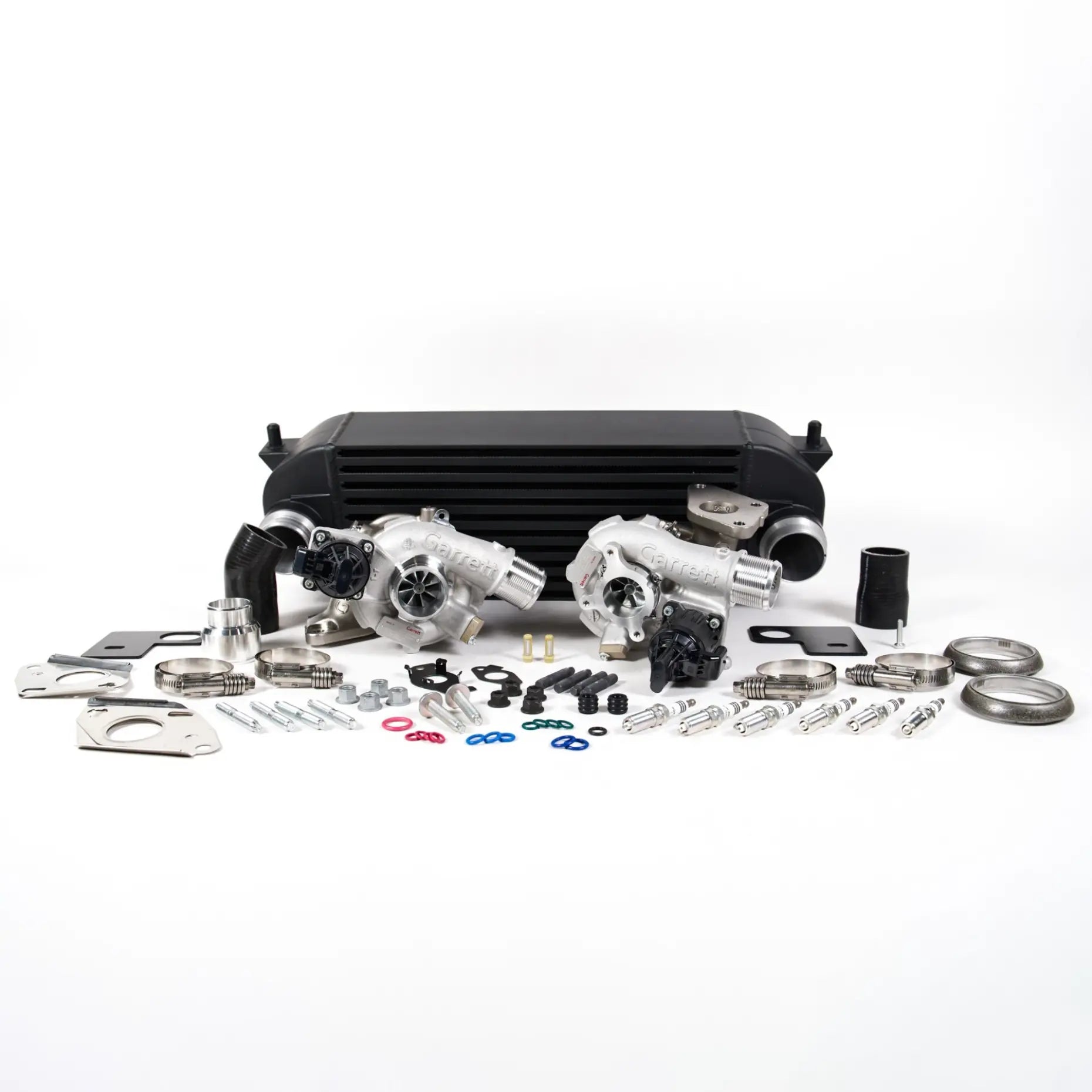 The Full-Race Complete Power Pack is a full hardware and turbo upgrade engineered specifically for the 2021+ Bronco and 2024+ Ranger 2.7L EcoBoost platform. Rather than supplying just a single turbo or component, this kit offers an integrated system—matching Garrett PowerMax turbos, high-flow intercooler, hoses, clamps, and all necessary components—for a cohesive performance upgrade. This comprehensive approach delivers higher boost potential, better thermal control, and enhanced power consistency under load. This is the kind of kit an enthusiast chooses when wanting to go beyond a bolt-on turbo and into serious performance territory.