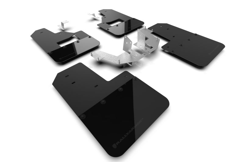 Rally Armor Mud Flaps: Protect and style your Ford Bronco with durable, easy-to-install mud flaps featuring a sleek metallic black logo. Ideal for off-road adventures.