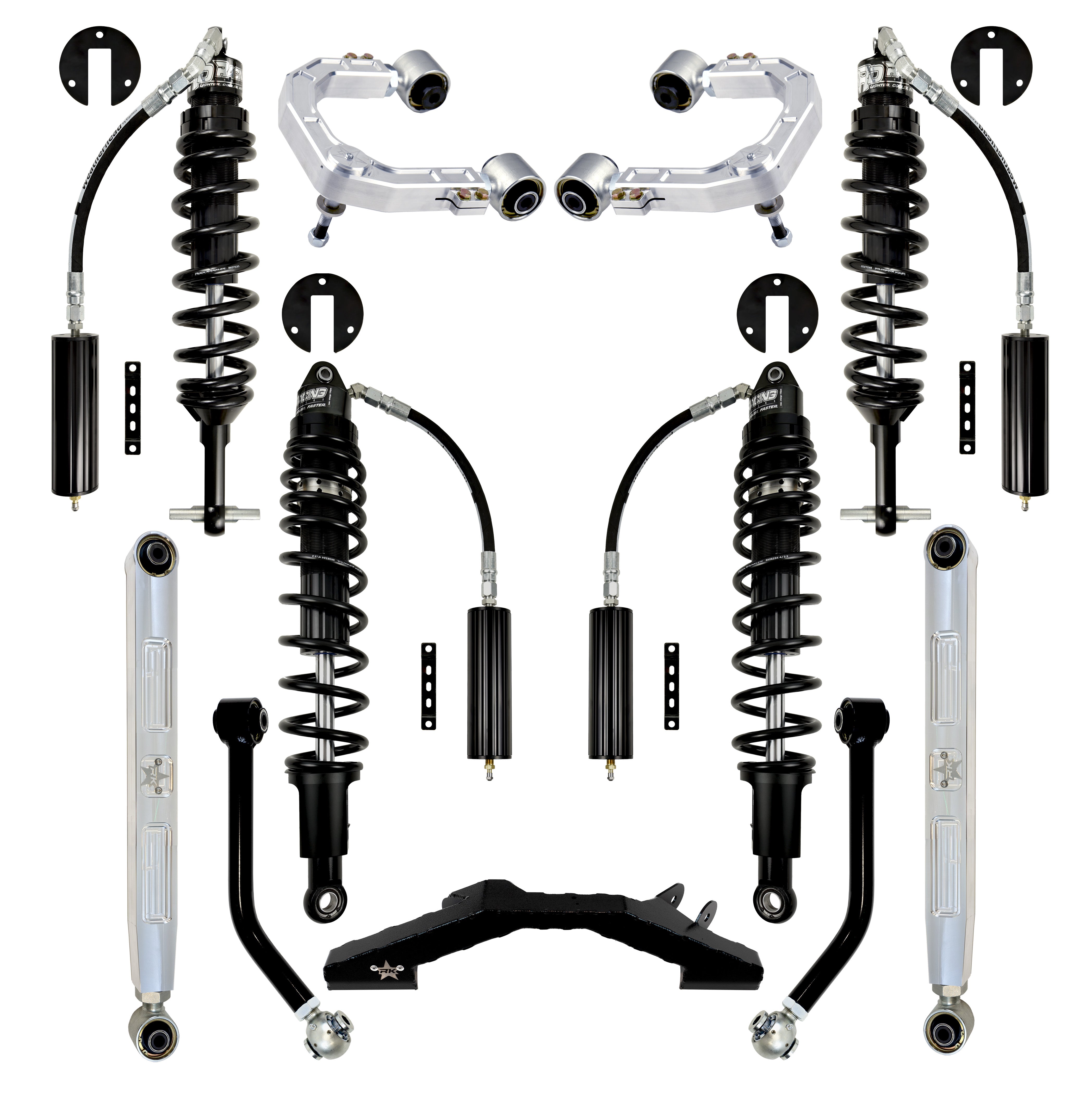 The Rock Krawler Suspension Bronco 3" Pro-X Elite System Stage 1 is a revolutionary upgrade for 6th Gen Bronco owners seeking to drastically improve suspension performance. With adjustable lift heights ranging from 2" to 3", this system is perfect for mounting 35" to 37" tall tires on your Bronco, all while maintaining factory fenders. It replaces the factory suspension components with the strongest and most advanced parts on the market. This system introduces unparalleled articulation, a smoother ride, and improved off-road capabilities, making it the ultimate choice for enthusiasts who want top-tier performance on and off the road.