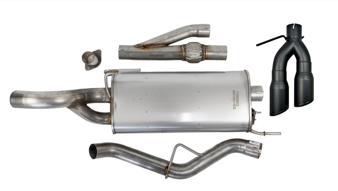 Upgrade your Ford F-150 V8 5.0L with this aggressive exhaust system. Black tips, easy installation, and increased horsepower. Fits 2021-2024 F-150 V8 5.0L.