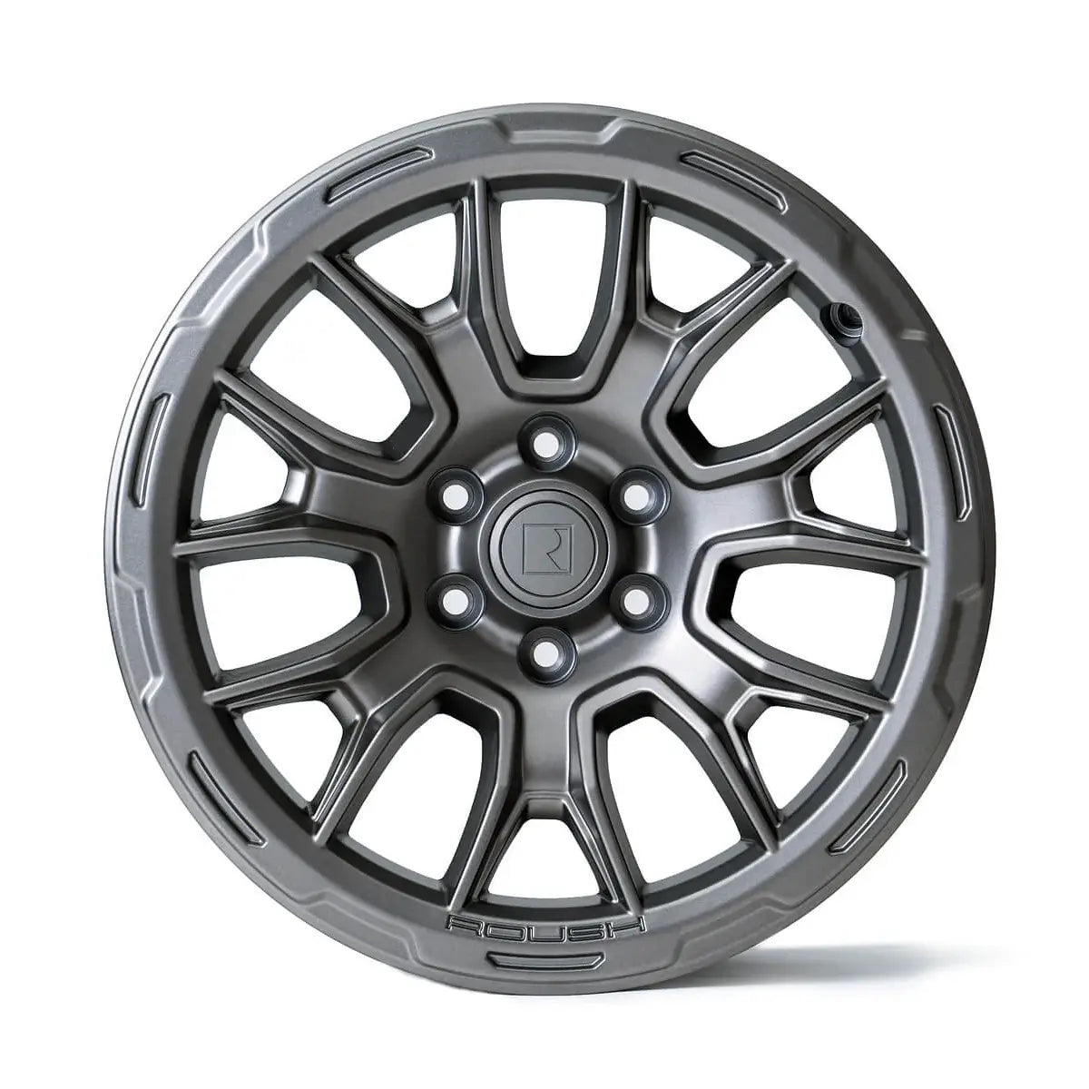 If you want to elevate your Ford F-150’s styling, stance, and capability, you should consider the Roush Performance 422288 Wheel Iridium 20 x 9 +18mm Offset - Grey. This wheel is designed to take you on any adventure, whether on road or off-road, with a balance of strength and style. It features a strengthened outer bead area for improved durability, and a custom-formed, glass-filled nylon air box tray that keeps the center of the wheel open for maximum airflow and brake cooling. The wheel also has an off-road ready Iridium Gray finish and a Roush logo on the center cap.