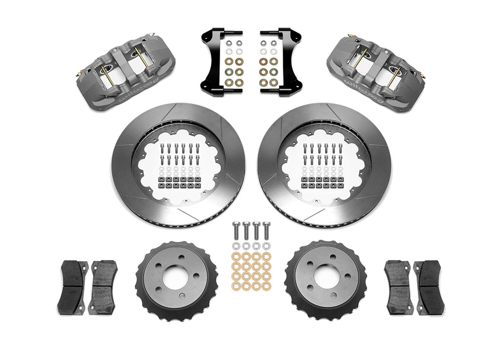Unleash the full potential of your 2015-2021 Ford Mustang on the track with the Wilwood AERO6 Big Brake Front Brake Kit. Engineered for dedicated road racing, this kit is specifically designed for base, EcoBoost, and standard GT models without rotor size restrictions. The AERO6R/ST six-piston calipers feature a forged aluminum body with a Type III Mil-Spec medium gray hard anodized finish for exceptional wear and corrosion resistance. This cutting-edge braking system ensures consistent performance under the most demanding conditions, with advanced Thermlock® pistons reducing heat transfer and extending component life. The 15.00-inch Spec37 alloy directional vane rotors are dynamically mounted for unmatched heat dissipation and durability, while race compound pads ensure superior stopping power.