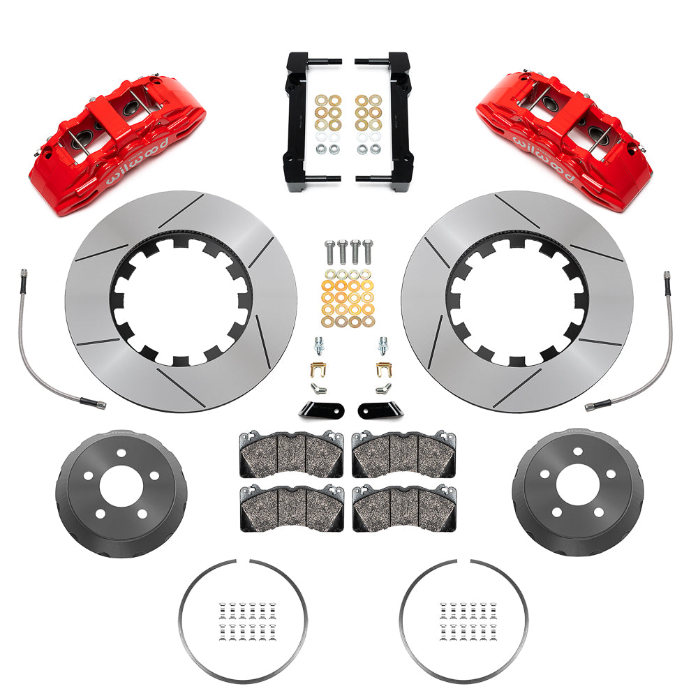 Upgrade your 2015-2021 Ford Mustang’s braking system with the Wilwood SX6R Big Brake Dynamic Front Brake Kit. Specifically designed for high-capacity braking, this kit features the largest dual-purpose caliper Wilwood has produced. Ideal for both street and track use, the red powder-coated six-piston calipers, combined with high-performance slotted rotors, ensure maximum stopping power and reliability. With exceptional heat management and compatibility with OE master cylinder output and ABS function, this brake kit enhances braking performance and provides durability for high-stress driving conditions.